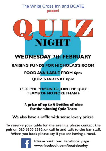 Thanks to Steve Brown for sending the following poster for BOATE's February Quiz Night :